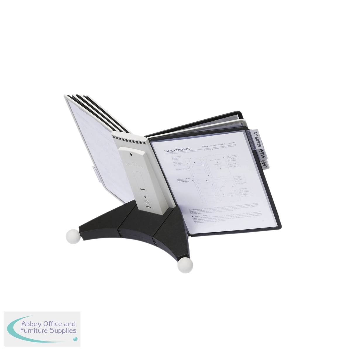 The DURABLE SHERPA range is a stylish display panel system range with a sturdy base. Perfect for use in a showroom, office, etc. This desk unit includes 10 A4 display panels (5 black and 5 grey) for holding documents. The panels are anti-glare and copy-proof which makes it easy to use. Great for holding price lists, product information, frequently used telephone numbers, etc.