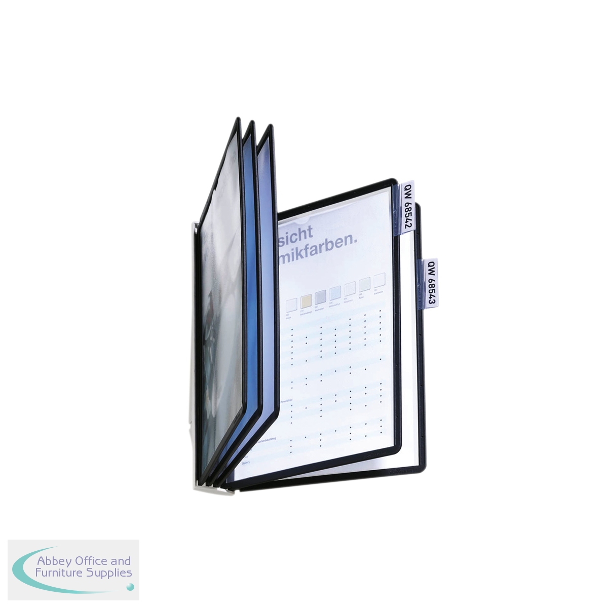 The DURABLE SHERPA range is a stylish display panel system range with a sturdy base. Perfect for use in a showroom, office, etc. This wall unit includes 5 black A4 double sided panels for holding up to 10 documents. The panels are anti-glare and copy-proof which makes it easy to use. Great for holding price lists, product information, frequently used telephone numbers, etc.