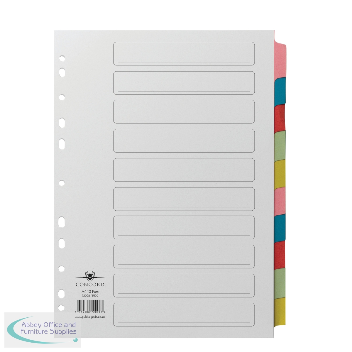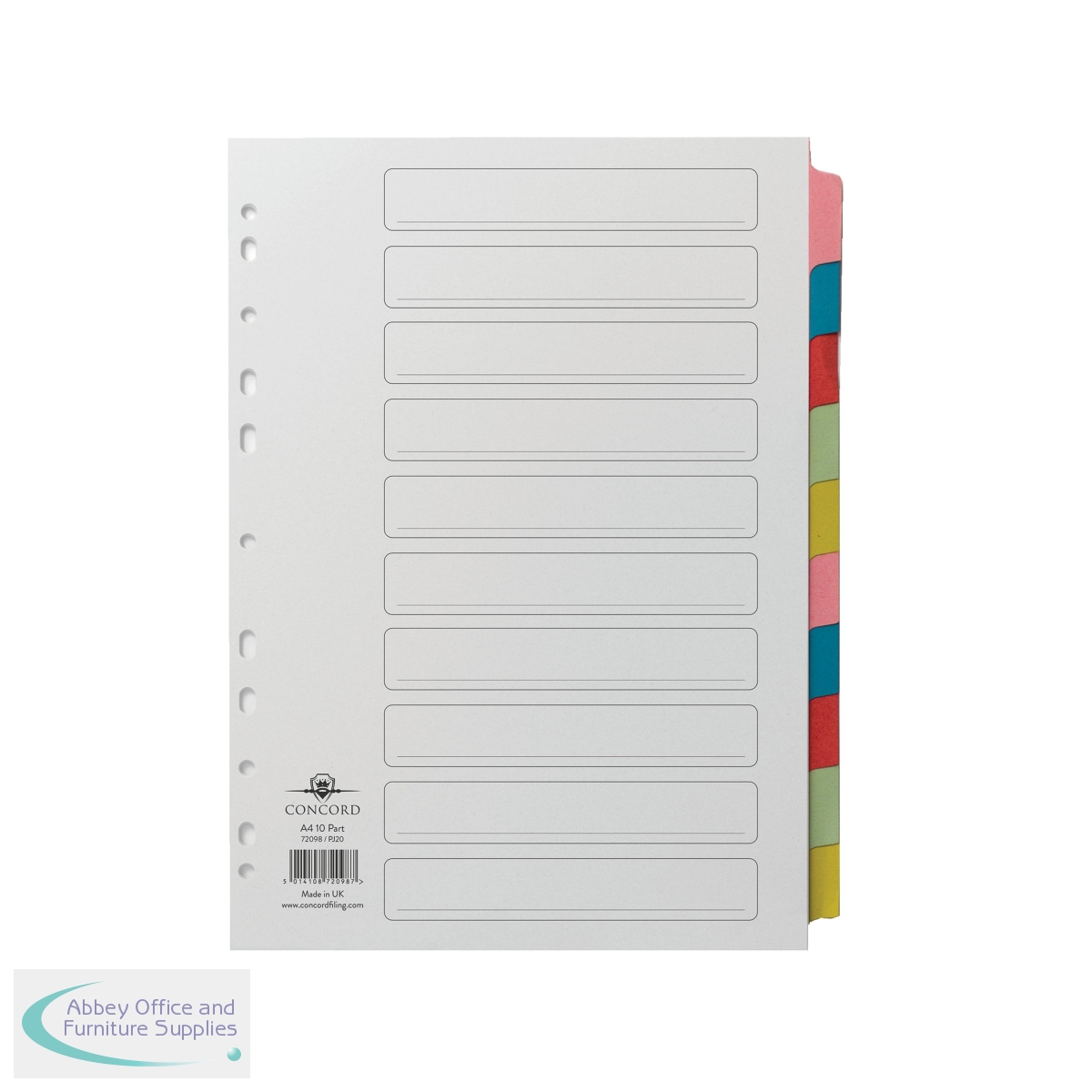 JT72098 - Concord Divider 10-Part A4 Multicoloured Tabs with Contents 72098/PJ20