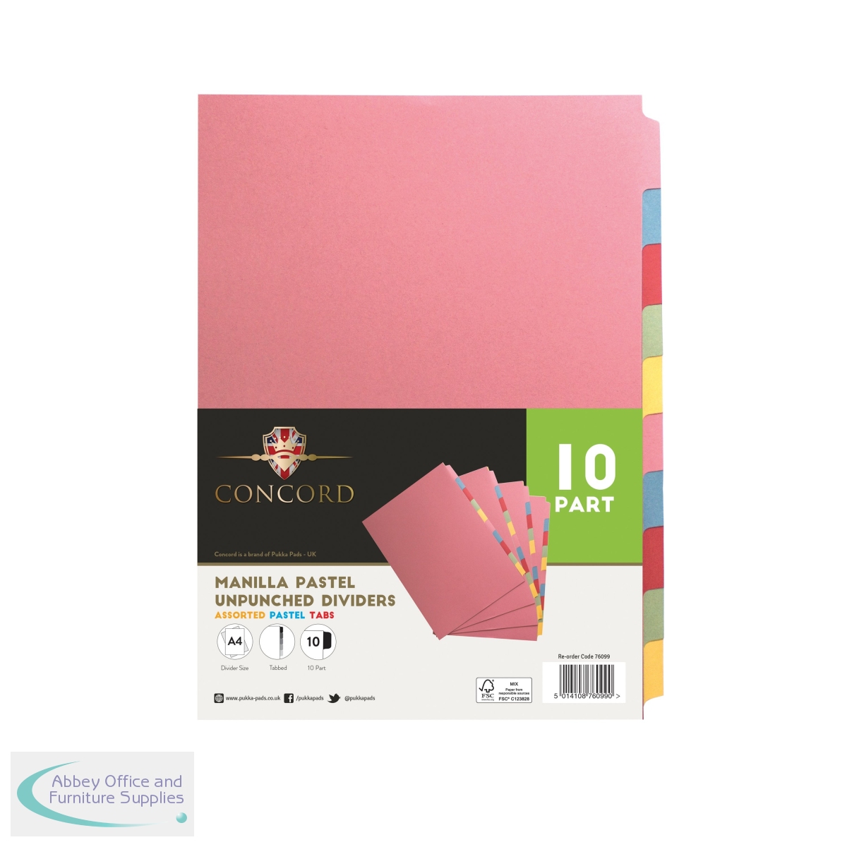 JT76099 - Concord Unpunched Divider 10-Part A4 Multicoloured (Pack of 10) 76099