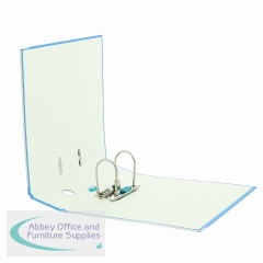 This Elba file features a standard lever arch mechanism with a 70mm capacity for filing A4 documents. Made from strong board, the file features a metal reinforced edge and metal thumb hole for easy retrieval from a shelf. This product is made from 76% recycled materials. This pack contains 10 blue lever arch files, ideal for colour coordinated filing.