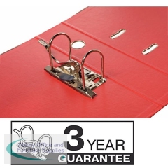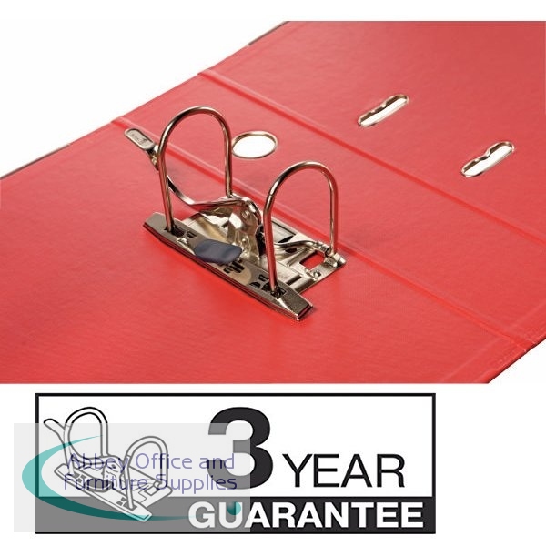 This Esselte lever arch file contains a patented No.1 filing mechanism with outstanding locking force to keep A4 documents secure. The file has a 75mm spine and can hold up to 500 sheets of 80gsm paper. The file also features durable polypropylene covers, a metal thumb hole for easy retrieval from a shelf and metal edges for long lasting use. This pack contains 10 burgundy A4 lever arch files.