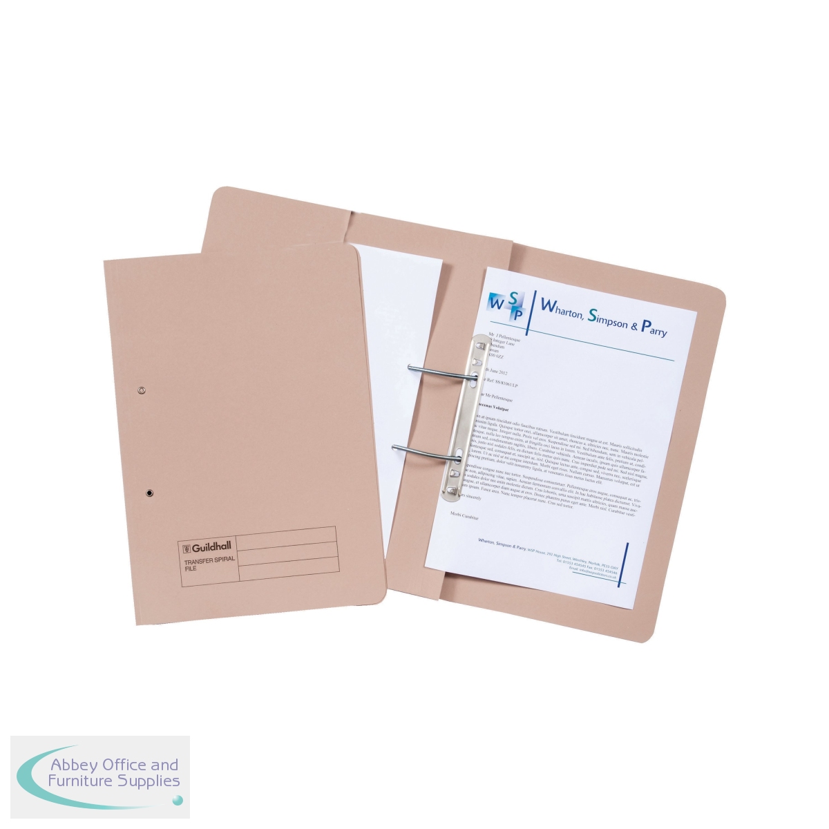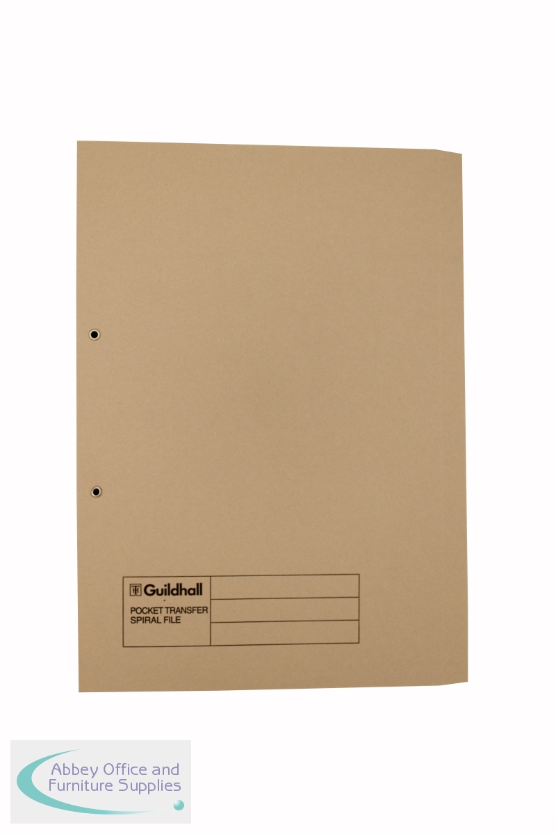 GH22137 - Exacompta Guildhall Transfer Spiral Pocket File 315gsm Foolscap Buff (Pack of 25) 349-BUF