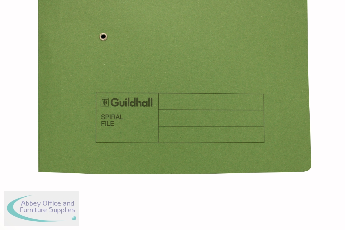 This environmentally friendly Exacompta Guildhall file is made from 100% recycled 285gsm manilla and features a spiral fitting for securing up to 380 sheets of A4 or foolscap paper. This pack contains 25 green files, ideal for colour coordinated filing.