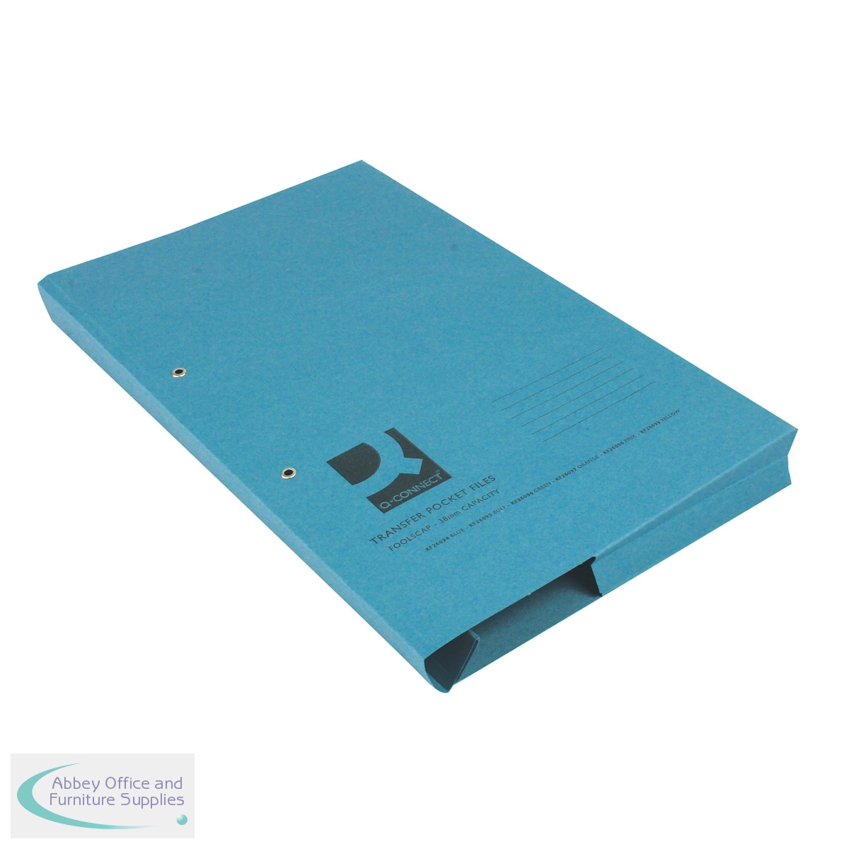 KF26094 - Q-Connect Transfer Pocket File 38mm Capacity Foolscap Blue (Pack of 25) KF26094