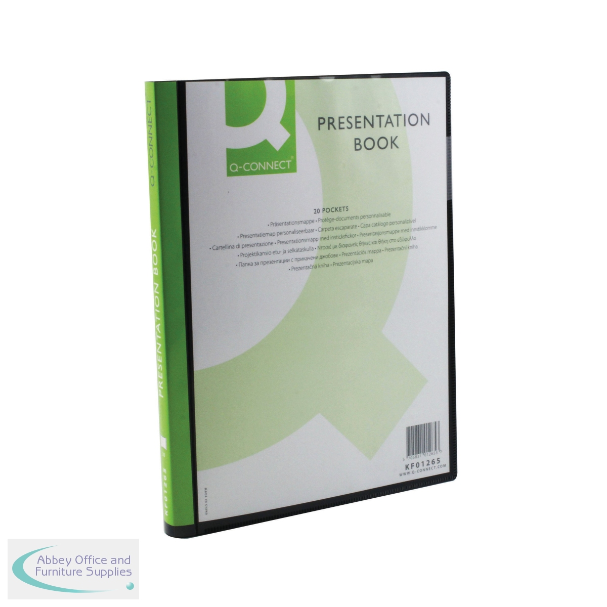 This quality Q-Connect Presentation Book is perfect for filing, displays and presentations. The 20 clear pockets protect and display up to 40 A4 sheets for a professional finish. A clear front pocket and full length spine allows for full personalisation of presentations and projects. This pack contains 1 black A4 presentation book.