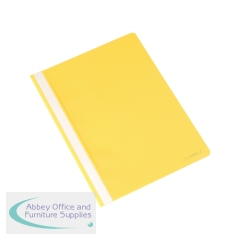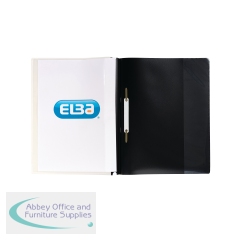 Ideal for filing and presentations, this Elba report file features a transparent cover for personalisation and a 2 prong, 8cm flat bar mechanism for A4 punched papers. Made from durable, wipe clean polypropylene, the file also features an opaque back cover for colour coded filing. This pack contains 50 black report files.