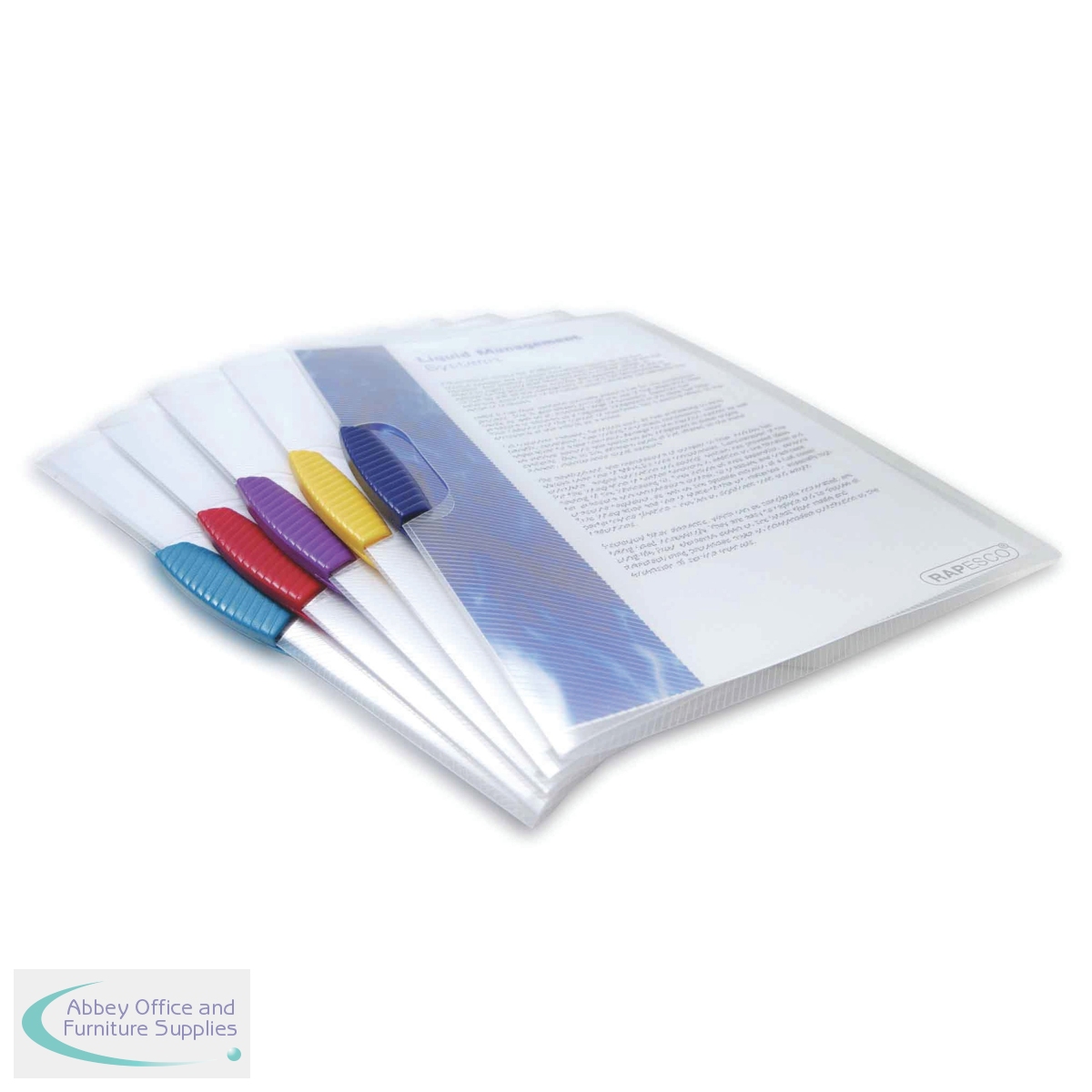 This stylish Rapesco Pivot Clip file is made from durable, transparent polypropylene with a coloured pivoting clip to secure up to 30 sheets of unpunched A4 paper. Ideal for reports, projects, presentations and more, this pack contains 5 clear files with assorted colour clips.