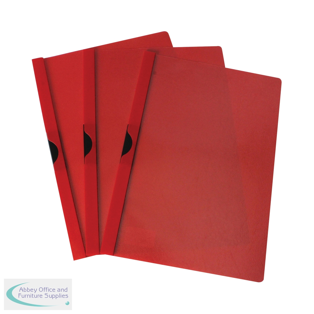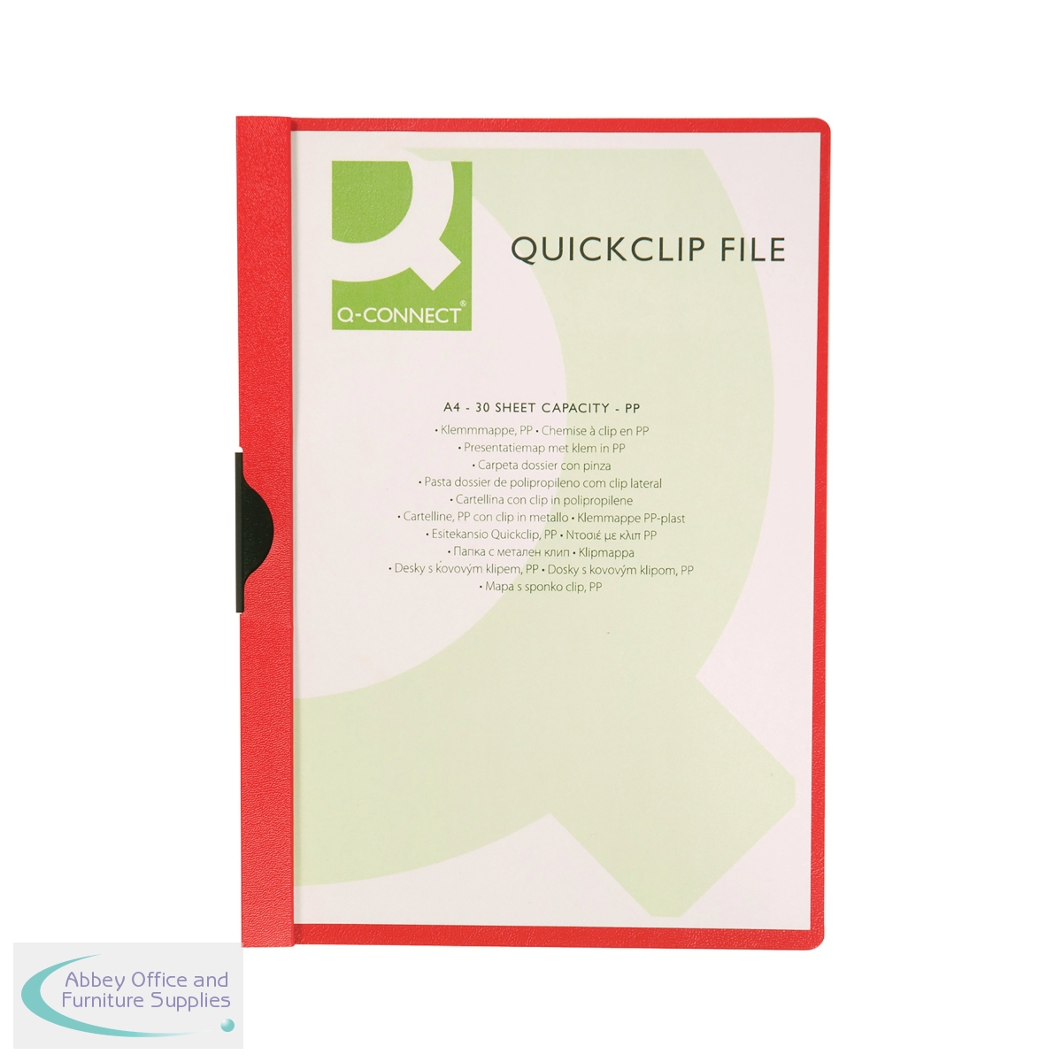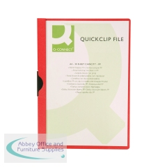 This Q-Connect Quickclip File makes an ideal presentation folder for storing and displaying unpunched papers. Simple pull out the clip, insert up to 30 sheets of 80gsm A4 paper and push the clip back into place. The folders have a transparent front cover, allowing you to display your title page, and a red coloured back cover for creating a colour coordinated filing system. This pack contains 25 red files.
