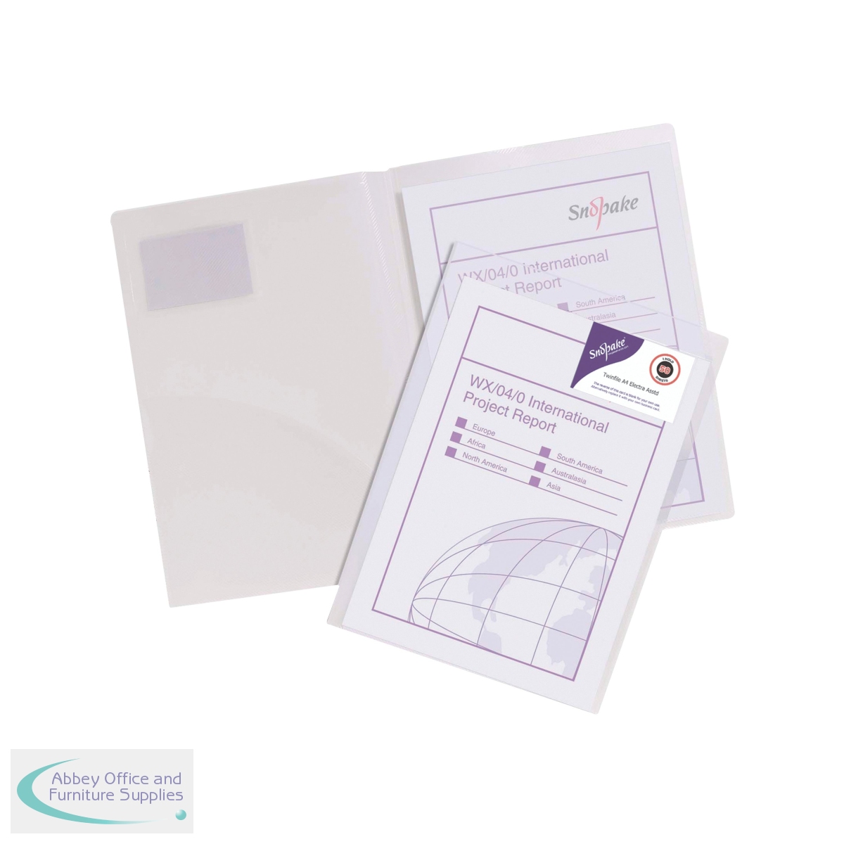 The Snopake TwinFile is an elegant file for presentations, projects, contracts, proposals and more. The 2 internal storage pockets can hold up to 50 sheets of unpunched 80gsm paper and there is space on the front for a business card or label of your choice. This pack contains five A4 files.