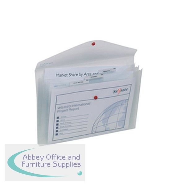 Secure your documents in style with the Snopake Polyfile. These envelope type wallets are made of durable polypropylene to protect your documents from damage, scuffing or spills. Each file features a press-stud closure for security and a clever index tab at the top for organised filing. Suitable for A3 filing, this pack contains 5 clear Polyfiles.