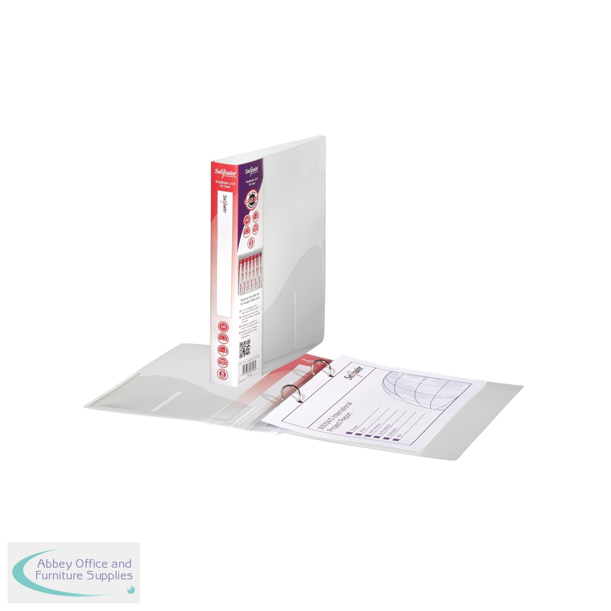Lightweight and strong, this Snopake Polypropylene Ring Binder has a top quality 2 O-ring binding mechanism with a 15mm capacity. The binder features a full length wrap-around spine label holder for personalisation, an internal pocket for storing unpunched papers and a business card holder for a professional finish. The binder is made from tough recyclable polypropylene and is suitable for storing, organising or presenting A5 documents. This pack contains 10 clear ring binders.