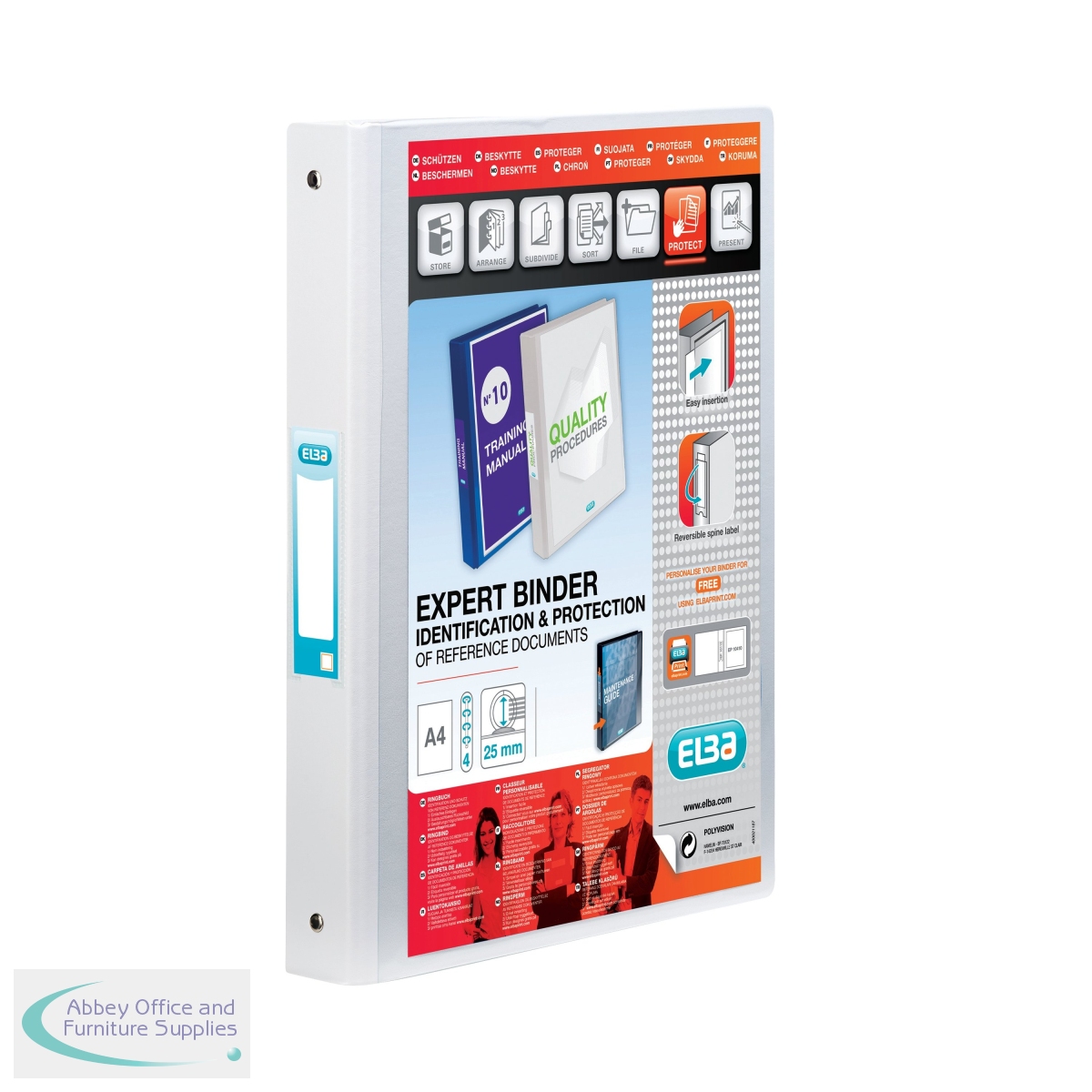 BX130107 - Elba Vision 25mm 4 O-Ring Binder PP A4 White 100080879