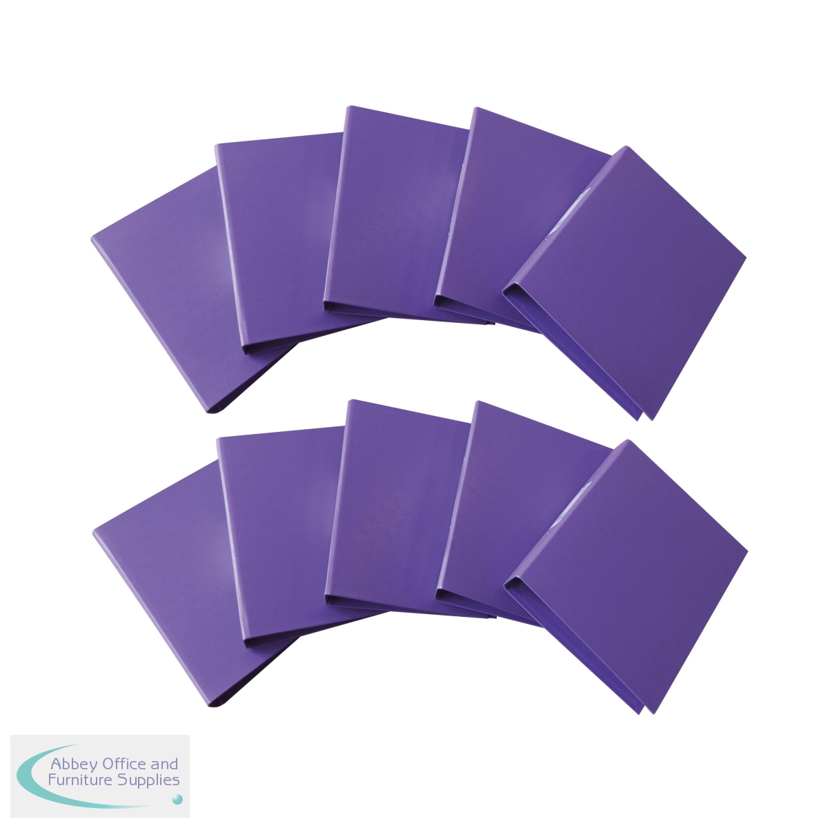 These handy, durable ring binders feature a standard 2 O-ring mechanism with a 25mm capacity for filing A4 documents. The ring binders also feature durable polypropylene covers and a plastic label holder on the spine for quick identification of contents. Ideal for colour coordinated filing, this pack contains 10 purple ring binders.