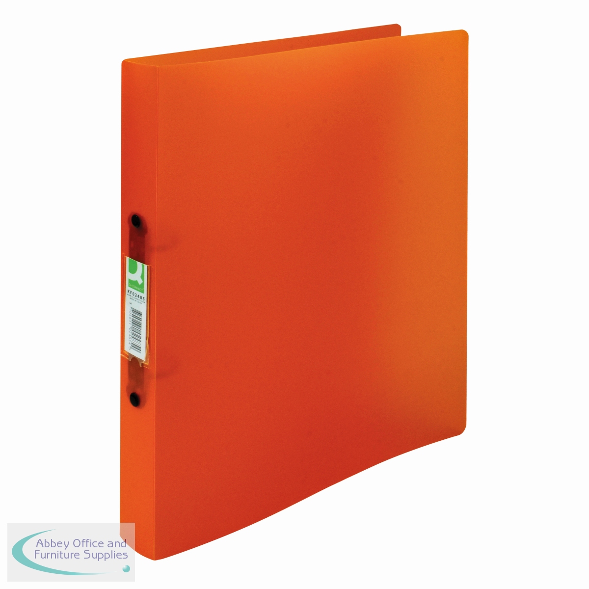 These hard wearing but lightweight polypropylene Q-Connect ring binders have a stylish frosted design which wipes clean with ease. The 2 ring mechanism provides easy access to contents and has a 25mm capacity for A4 sheets. These binders also have a spine label for easy identification of contents. This pack contains 12 assorted binders in clear, red, blue, green, orange and purple.