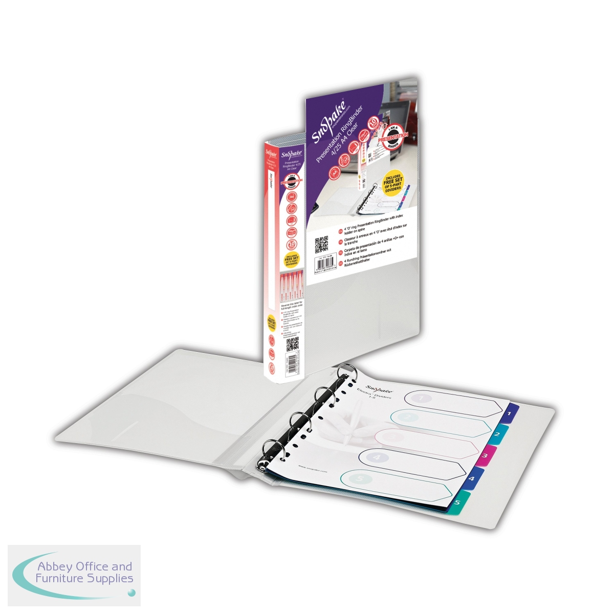 SK04412 - Snopake Presentation 4 A4 Ring Binder 25mm Clear 13368