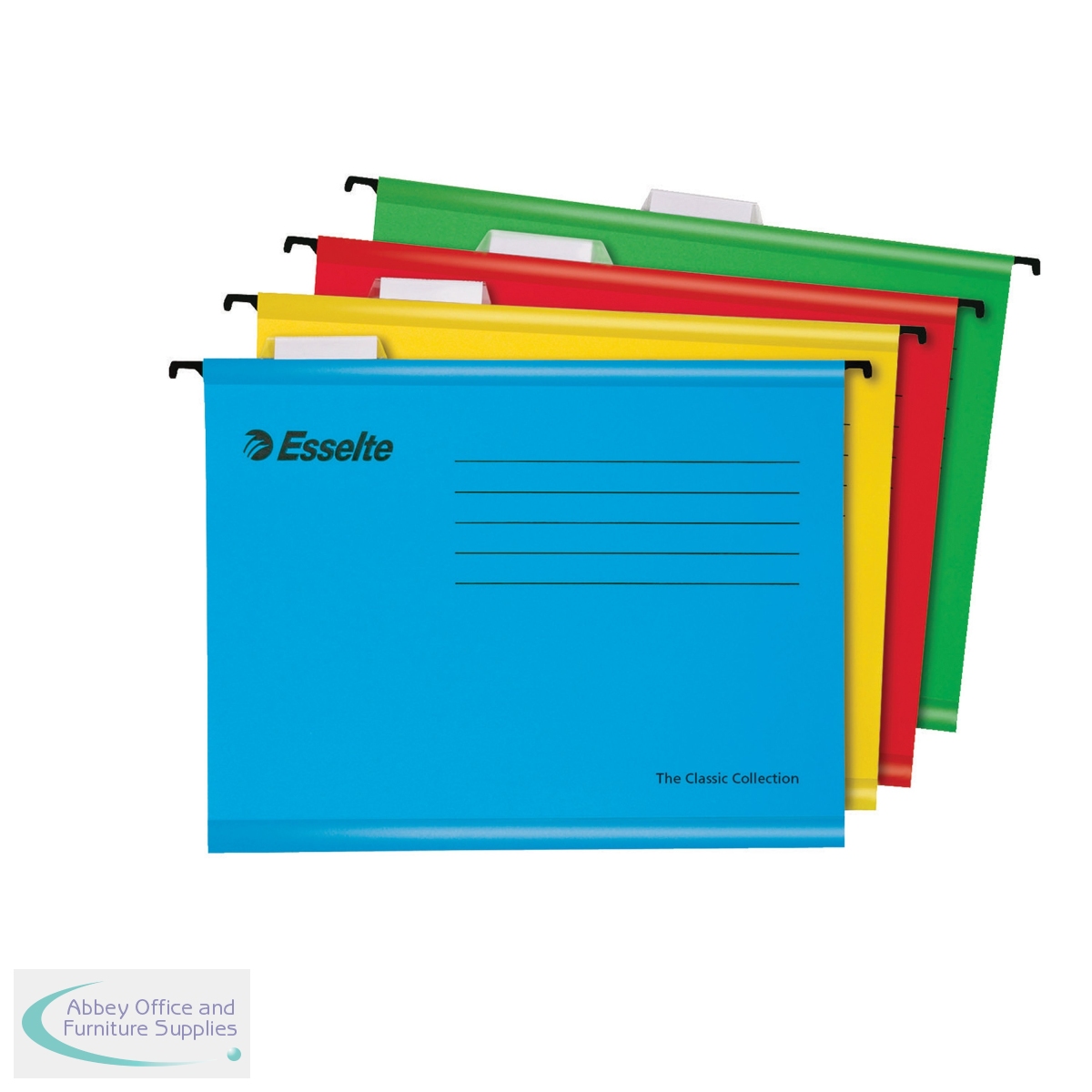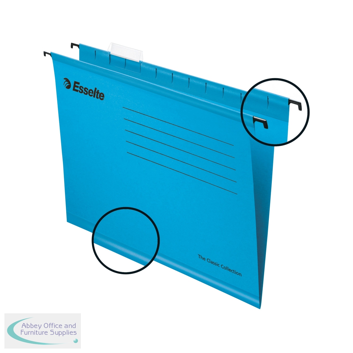 This bright, environmentally friendly Esselte Classic suspension file is made from 100% recycled, 210gsm board with a reinforced base for extra strength and durability. Suitable for filing A4 documents, the suspension file is supplied with a clear plastic label holder and matching white paper labels for quick identification of contents. Ideal for colour coordinated filing, this pack contains 25 blue suspension files.