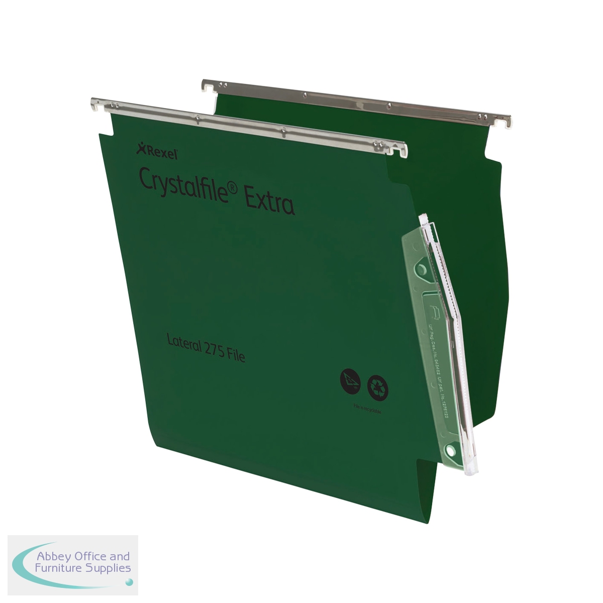 These tough Rexel Crystalfile Extra lateral files are made from durable polypropylene and are designed to last up to 5 times longer than manilla files. With a wipe clean satin finish, the file features an extra long, linkable tab for convenient filing. With a bar length of 275mm, each file has a 15mm capacity and can hold up to 150 A4 sheets. This pack contains 25 green lateral files and comes with tabs and printable inserts.