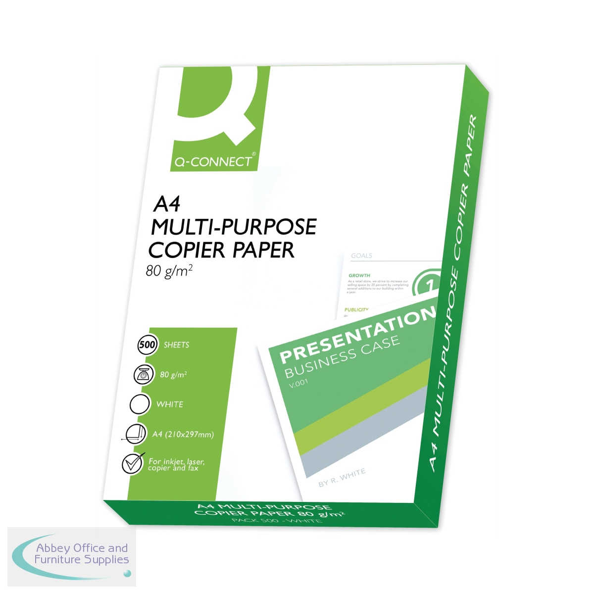 Buy Q-Connect White 80gsm A4 Copier Paper and you save on cost but not on quality. Bright white, highly opaque with excellent ink retention, this paper is ideal for everyday printing and copying. Its ultra-smooth 80gsm finish shows up excellent contrast against ink or toner with almost no bleed through. Q-Connect provides the perfect combination of value and excellence for crisp, clean printouts on paper that does not cost the Earth. Key Features