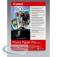 Canon Photo Paper Pro A3. Designed for graphics pros and discerning home users this superior paper offers the finest photographic output available. For razor-sharp reproduction and colour matching there is simply no substitute. Pack of 10 sheets. 270gsm