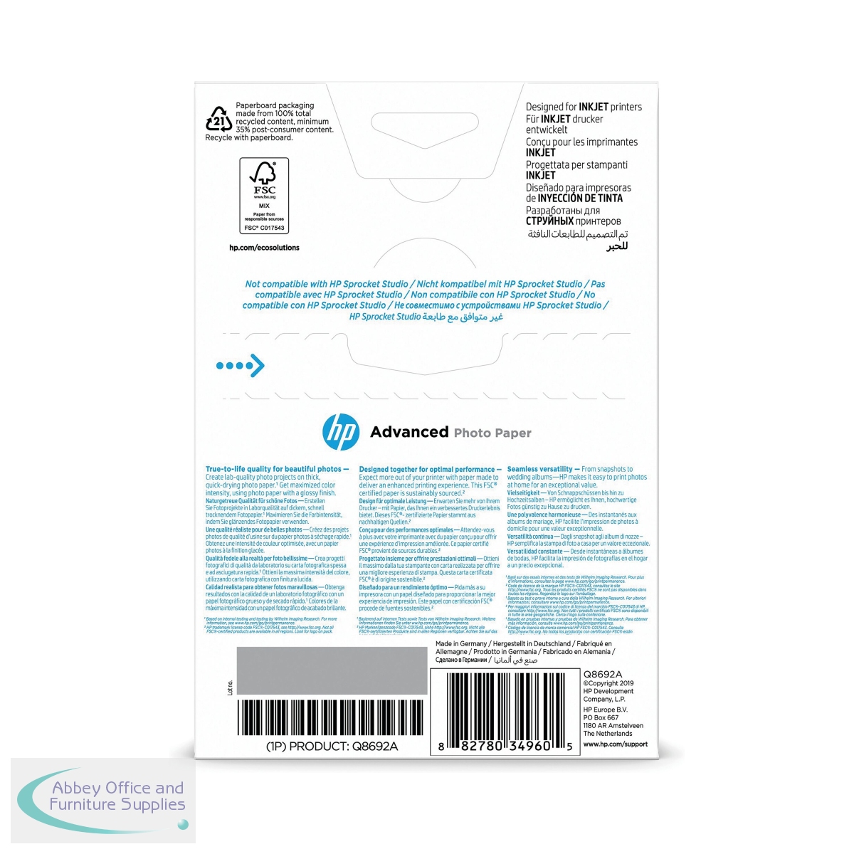 HPQ8692A - HP Advanced Glossy Photo Paper 10 x 15cm Borderless 250gsm (Pack of 100) Q8692A