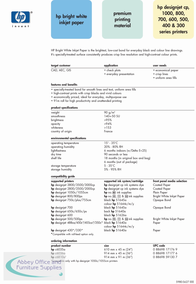 [ Hewlett Packard; Paper; Wide Format Inkjet Paper; OEM Code C6810A; EAN 00088698591307; VOW Code HPC6810A ]