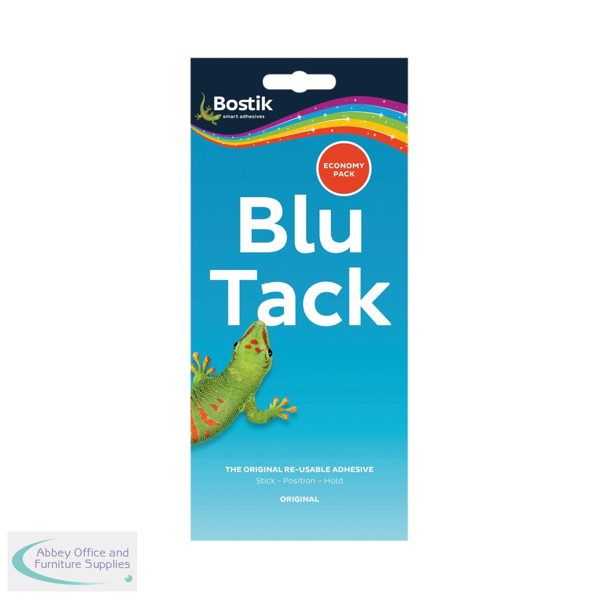 Supplied in 12 x 110g Economy Packs, Bostik Blu Tack is the original reusable adhesive. Apply it to almost any non-porous surface: painted walls, vinyl-coated wallpaper, glass or metal. You can hang up paper posters, laminated signs or small objects easily. Or use it to pick up small and fiddly items like screws or pins, affix phones and stationery to desks, or remove lint from clothes.