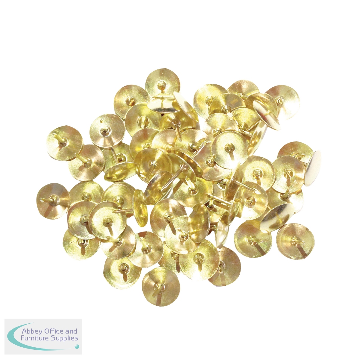 Ideal for displays, posters, notices and more, these brass drawing pins are designed for regular, repeated use and feature a 9.5mm diameter head. The sharp, metal pin allows paper, card and other materials to be fastened securely to walls, notice boards and other hard surfaces. This pins come packed in 10 boxes of 100 pins.
