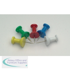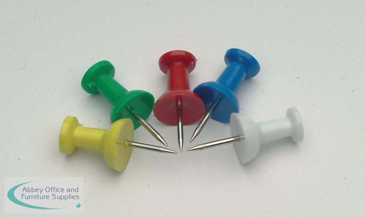 These multicoloured push pins feature a durable plastic head and come in convenient hanging packs, which double as storage when the pins are not in use. This pack contains 10 boxes of 25 pins (250 in total).