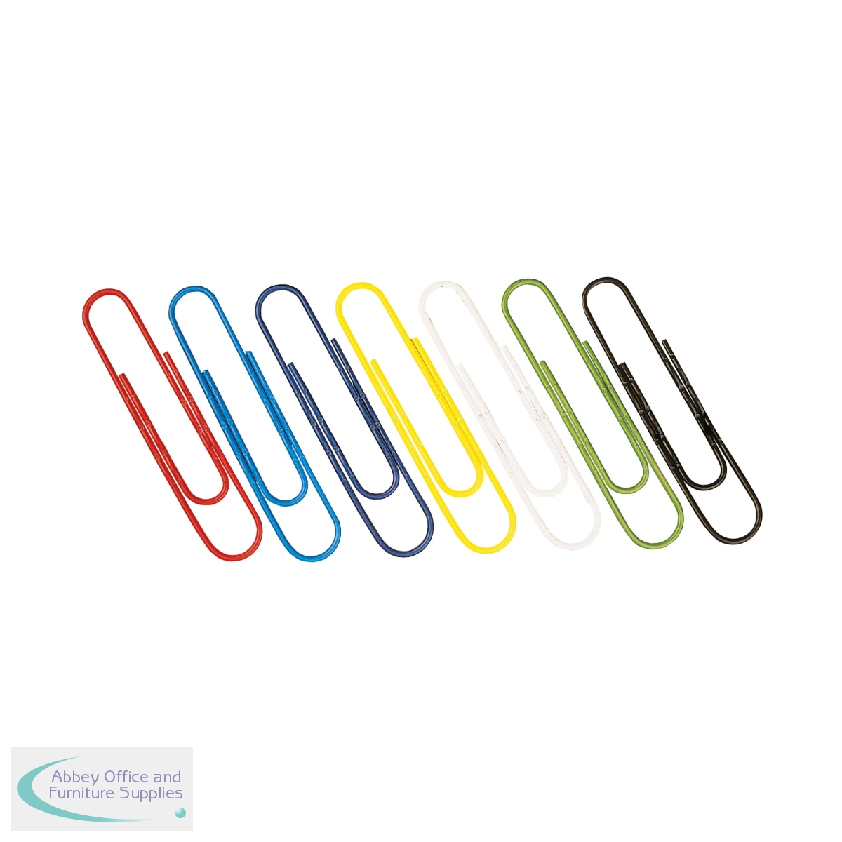 These 32mm coloured paperclips are made from strong bent wire with a tough plastic covering and are ideal for colour coordinating work. This pack contains 10 boxes of 100 paperclips (1,000 in total).