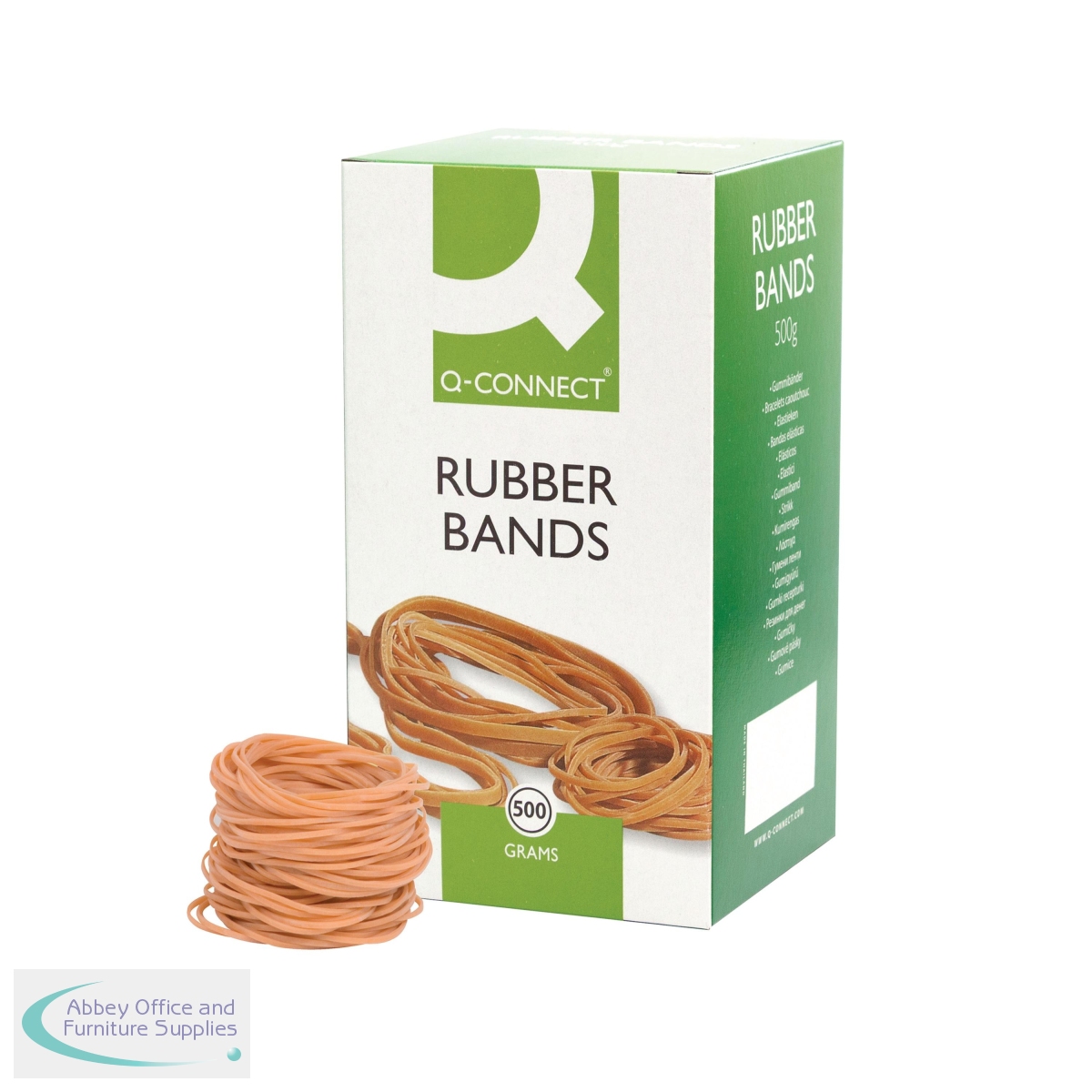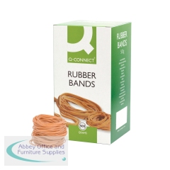 These Q-Connect Rubber Bands are manufactured using a high latex content for repeated use, time and again. These No.19 rubber bands measure 88.9 x 1.6mm. This large pack contains 500g of rubber bands.