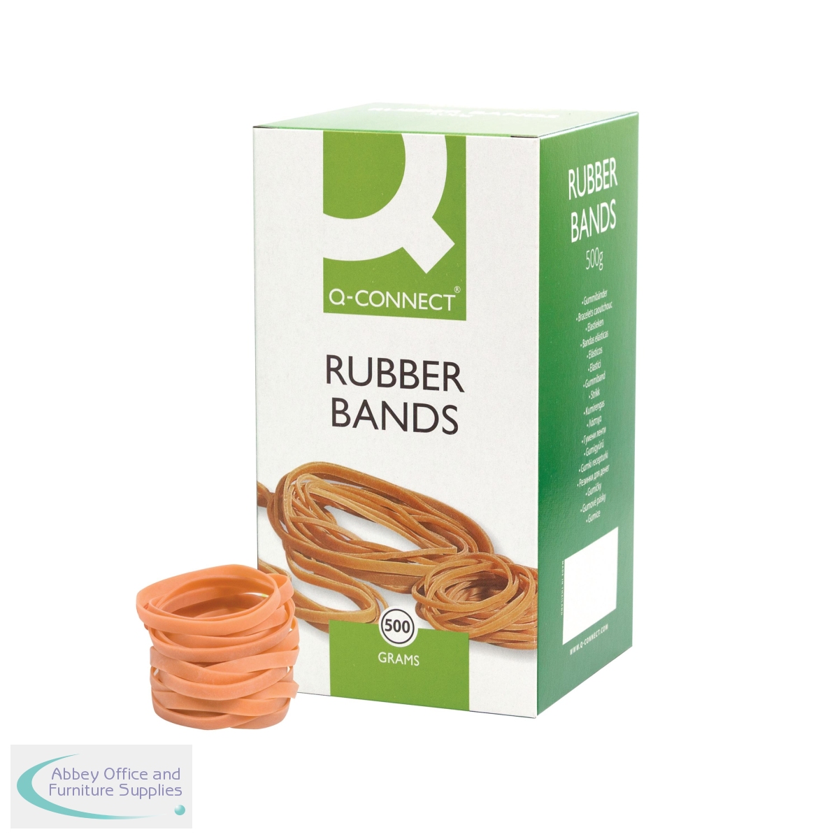 These Q-Connect Rubber Bands are manufactured using a high latex content for repeated use, time and again. These No.63 rubber bands measure 76.2 x 6.3mm. This large pack contains 500g of rubber bands.