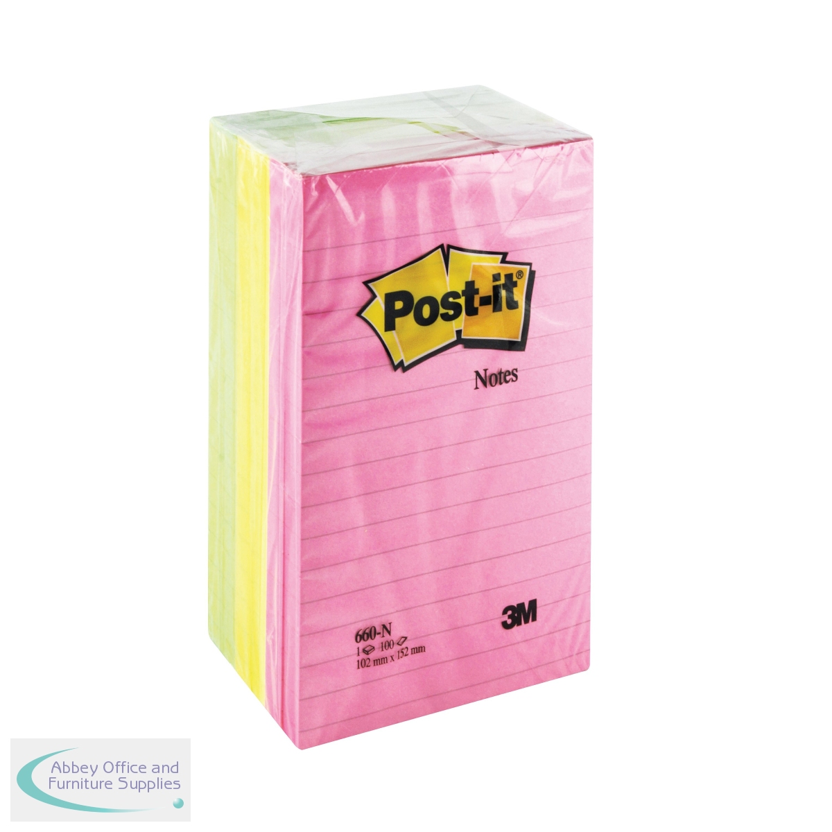 3M25551 - Post-it Notes XXL 101x152mm Lined Neon Assorted (Pack of 6) 660N