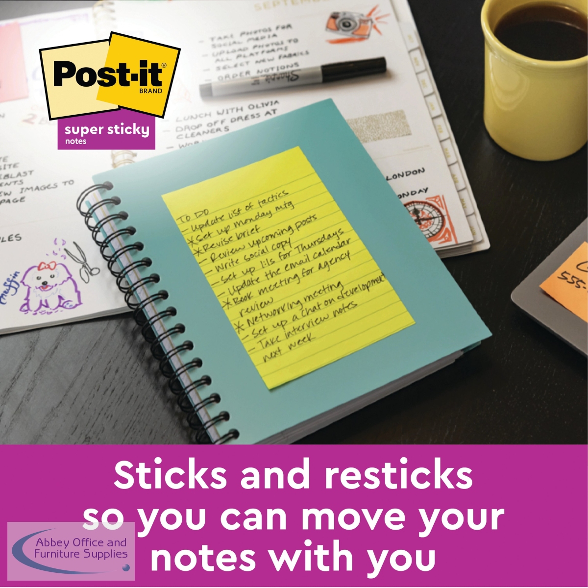 Ideal for longer messages, notes, reminders and checklists, these XXL Post-it Notes measure 101 x 152mm and are lined for neat notes. Each pad contains 100 sheets for long lasting use at work or at home. This assorted pack contains 6 pads in neon pink, yellow and green.