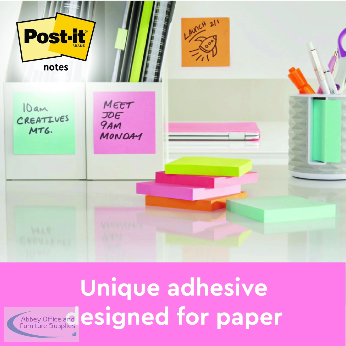 Ideal for desktop use, this Post-it Note Cube is designed for long lasting use, with 350 sheets per cube. The strong adhesive will adhere to most surfaces and remove cleanly, which is perfect for making notes or leaving messages and reminders. This pack contains 1 note cube measuring 76 x 76mm in assorted neon colours.