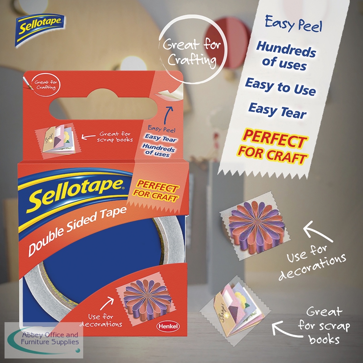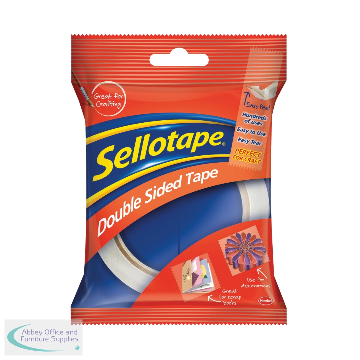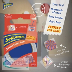This Sellotape Double Sided Tape is coated on both sides with a strong adhesive and is ideal for mounting displays, crafts, and more. The tape is easy tear and features an easy to remove backing for quick application. This pack contains 6 large core rolls measuring 25mm x 33m.