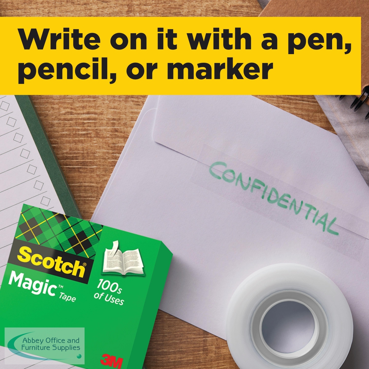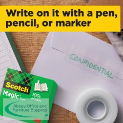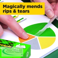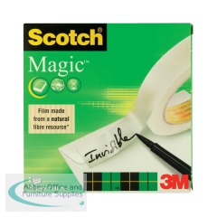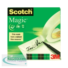 Scotch Magic Tape is a long lasting, solvent-free tape that is designed not to yellow or dry out with age. Virtually invisible when applied, this tape is perfect for repairing torn paper or wrapping packages attractively. The matte surface can be written on, which is ideal for adding labels or notices to parcels. This pack contains 1 roll of tape measuring 25mm x 66m.