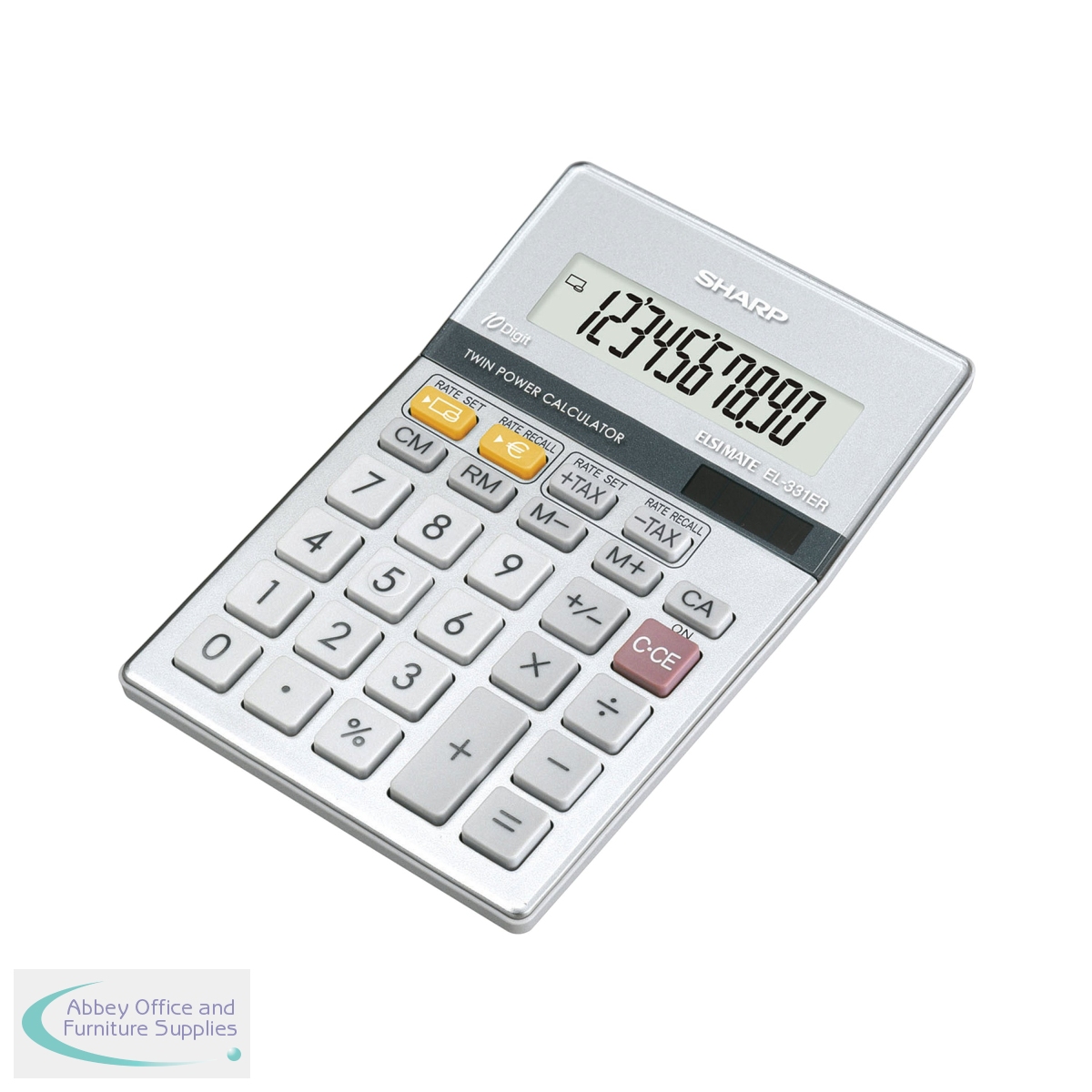 Modern styling and functionality combine in this sleek, silver desktop calculator from Sharp. A large, tilted 10-digit display and colourful plastic keypad make this a sturdy and attractive addition to your desktop. Dual powered to save on energy use, it includes an automatic shutdown feature which turns the calculator off after 7 minutes of disuse. With nifty features like the currency converter, 4 key memory and tax calculator functions, the EL-331ER is a great choice for everyday calculations.