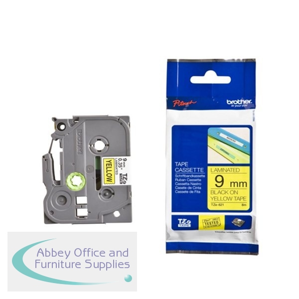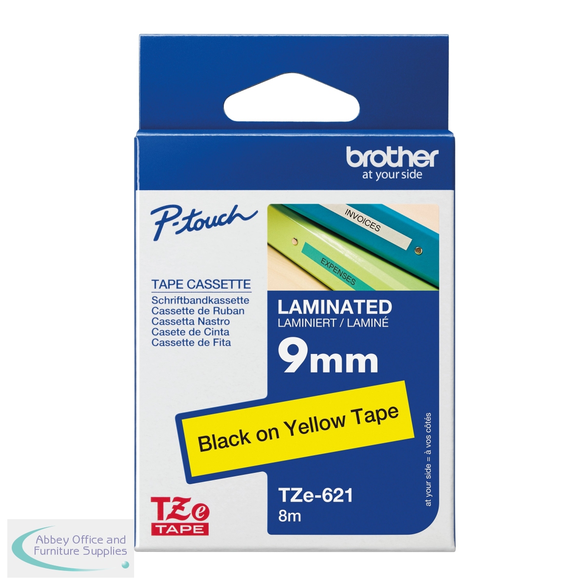 BA8082 - Brother P-Touch TZe Lam Tape Cassette 9mm x 8m Black on Yellow Tape TZE621