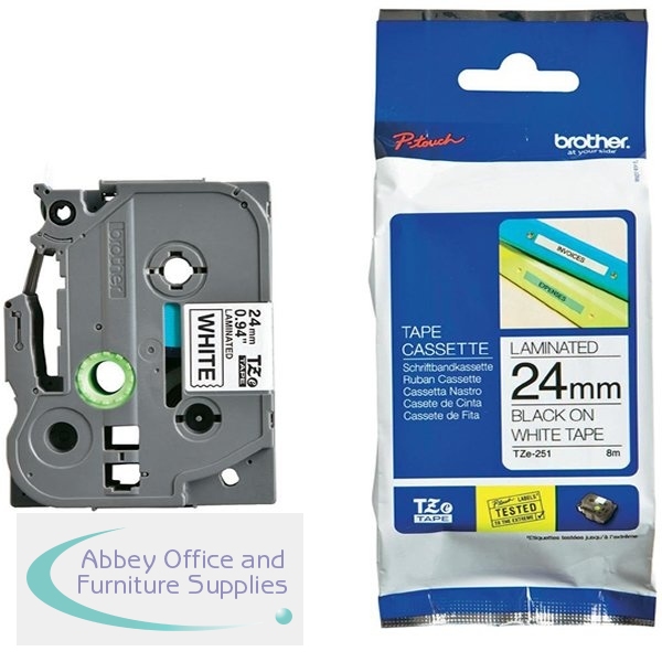 BA8119 - Brother P-Touch TZe Lam Tape Cassette 24mm x 8m Black on White Tape TZE251
