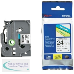 Supplied on a long 8m roll, this TZe labelling tape from Brother is perfect for identifying and labeling items with your P-Touch label maker, even in extreme environments. This 24mm wide tape is covered with a laminate film to protect the tape from wear and tear in daily use. The tape is also waterproof and exceptionally resistant to changes in temperature, so it'll stay attached in all weathers and conditions. Ideally for industrial environments, it's both chemical and abrasion resistant. Black text on a white background lets you colour code your labels for efficient use.