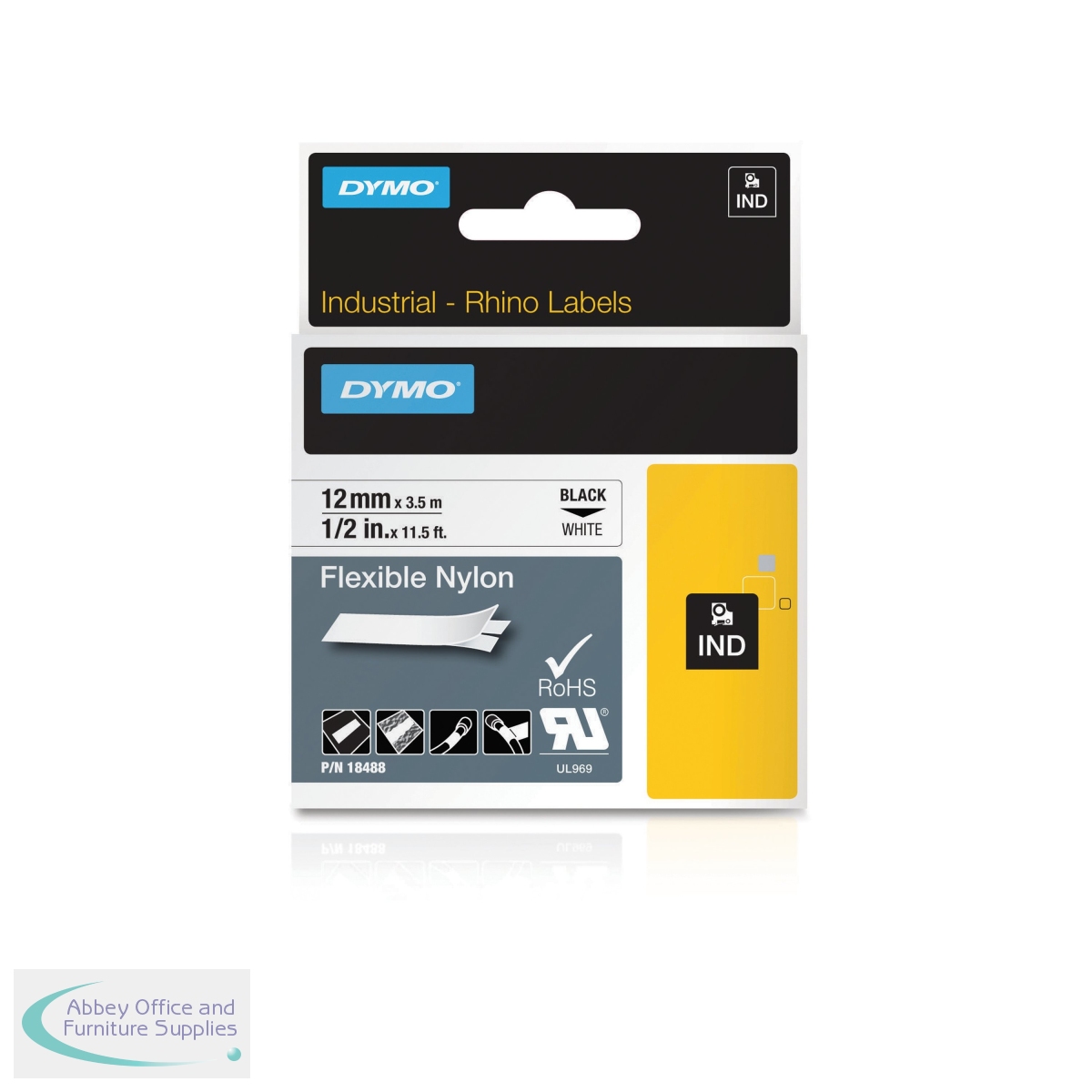 ES18758 - Dymo 18488 Rhino Nylon Tape 12mm x 3.5m Black on White S0718100