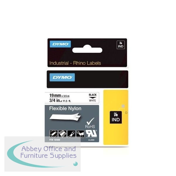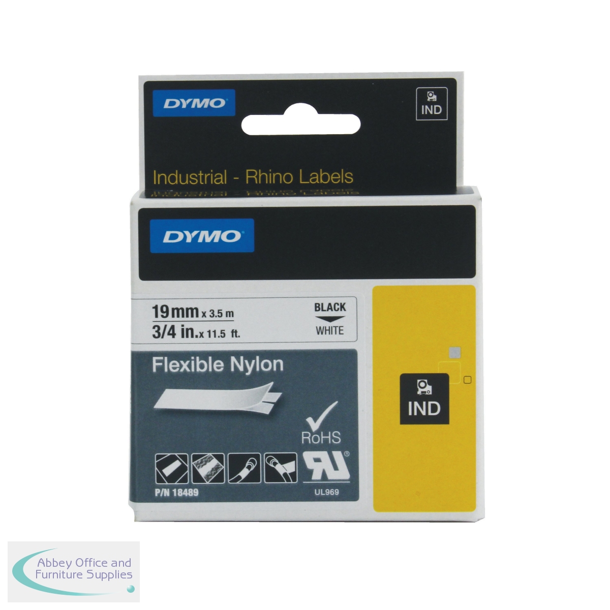ES18759 - Dymo 18489 Rhino Nylon Tape 19mm x 3.5m Black on White S0718120