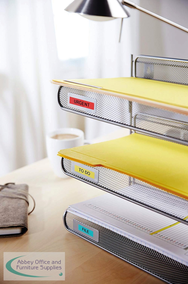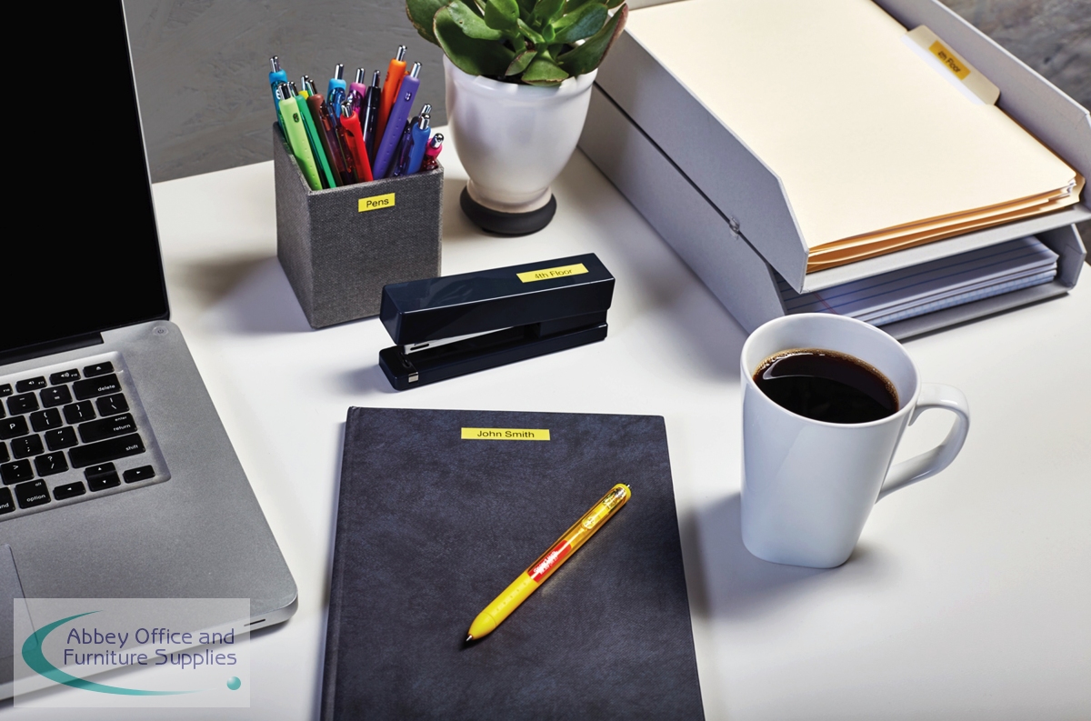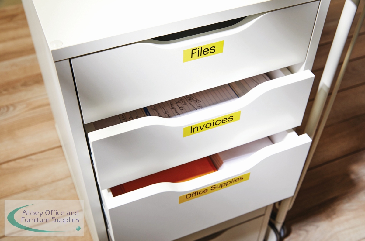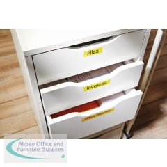 With black text on a yellow background, this Dymo D1 standard tape is ideal for labelling stationery, equipment, files, folders and more. Made from strong polyester, the tape features a strong self-adhesive backing that is suitable for almost all surfaces. Compatible with Dymo LabelManager and MobileLabeler label makers, the cassette slots in with ease. The tape is 9mm wide and comes supplied on a 7 metre roll.