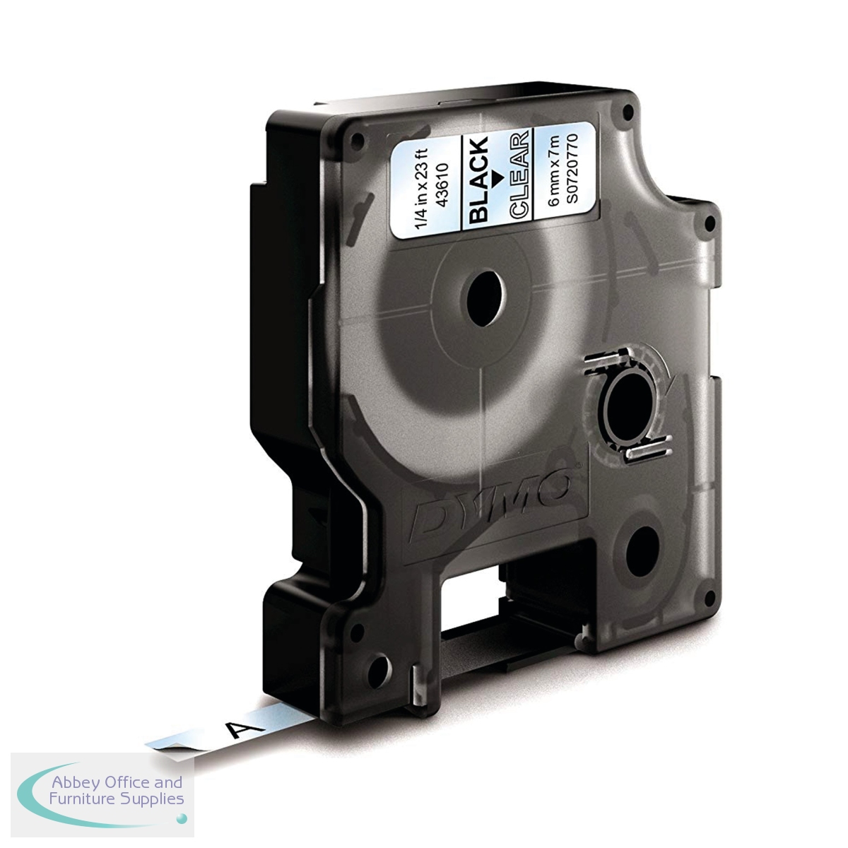 ES43610 - Dymo 43610 D1 LabelMaker Tape 6mm x 7m Black on Clear S0720770