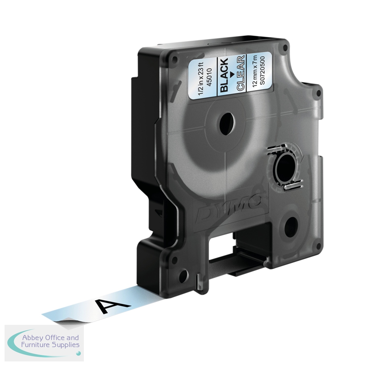 ES45010 - Dymo 45010 D1 LabelMaker Tape 12mm x 7m Black on Clear S0720500