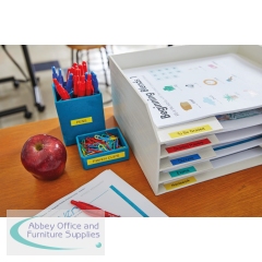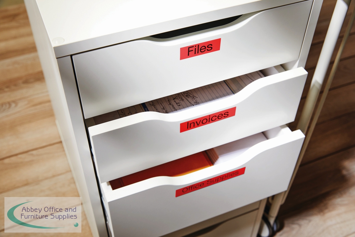 With black text on a red background, this Dymo D1 standard tape is ideal for labelling stationery, equipment, files, folders and more. Made from strong polyester, the tape features a strong self-adhesive backing that is suitable for almost all surfaces. Compatible with Dymo LabelManager and MobileLabeler label makers, the cassette slots in with ease. The tape is 19mm wide and comes supplied on a 7 metre roll.