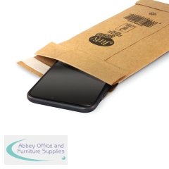 These durable, lightweight Jiffy padded bags feature tough, brown Kraft outer paper with a 100% recycled paper fibre lining. The bags have a doubled glued bottom flap and no side seams for extra protection in transit and are also 100% recyclable. These size 00 mailers measure 105 x 229mm. This pack contains 200 gold mailers with a self-seal closure.