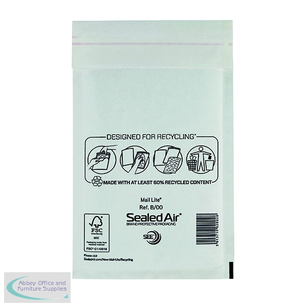 Mail Lite offers the optimum packaging solution for shipping everyday items. Practical and easy to use with an easy to write on surface and excellent label adhesion, they have a self-seal strip on the top flap, ideal for saving time in a busy packing department or post room. Lightweight for postal cost savings, typically saving over 35% in postal costs, they can often replace heavier, more expensive cartons, saving on distribution costs whilst offering greater protection to goods in transit. With a tear strip for quick and easy opening, they are designed for recycling with two separate components both of which are recyclable. These size B/000 bags measure 120 x 210mm and are supplied in a pack of 100 white postal bags.