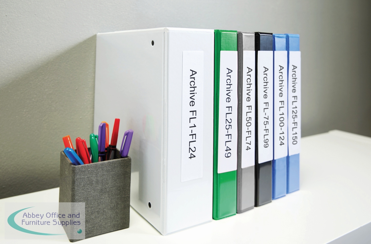 This roll of lever arch file labels is suitable for high-speed use with all Dymo LabelWriter printers, printing anything from a single label to the entire roll at once with the efficient thermal print mechanism. The self-adhesive backing makes it easy to secure labels to almost any surface. Suitable for filing organisation, this pack contains 110 high quality paper labels.